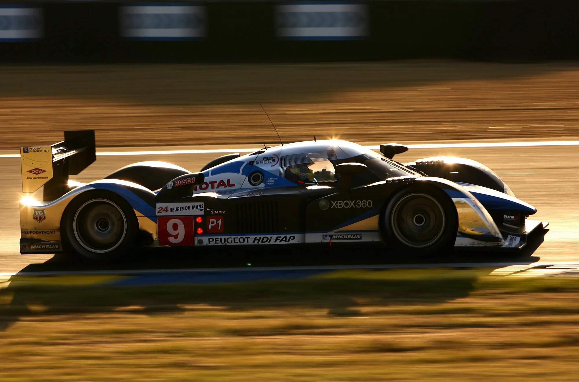 Joest’s pit wall glows orange in the setting sun.