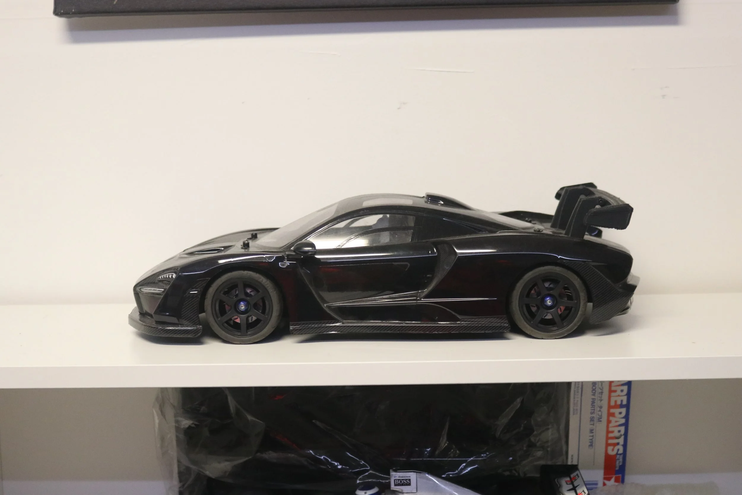 This RC version uses Tamiya’s versatile TT-02 chassis, upgraded with a brushless motor for smooth, high-performance driving. The TT-02’s durable shaft-driven 4WD system provides a reliable platform for the Senna body, while its tunability makes it a favorite among enthusiasts. A highlight of this build is the custom 3D-printed rear wing, which is servo-actuated—replicating the active aerodynamics of the real Senna in miniature form.